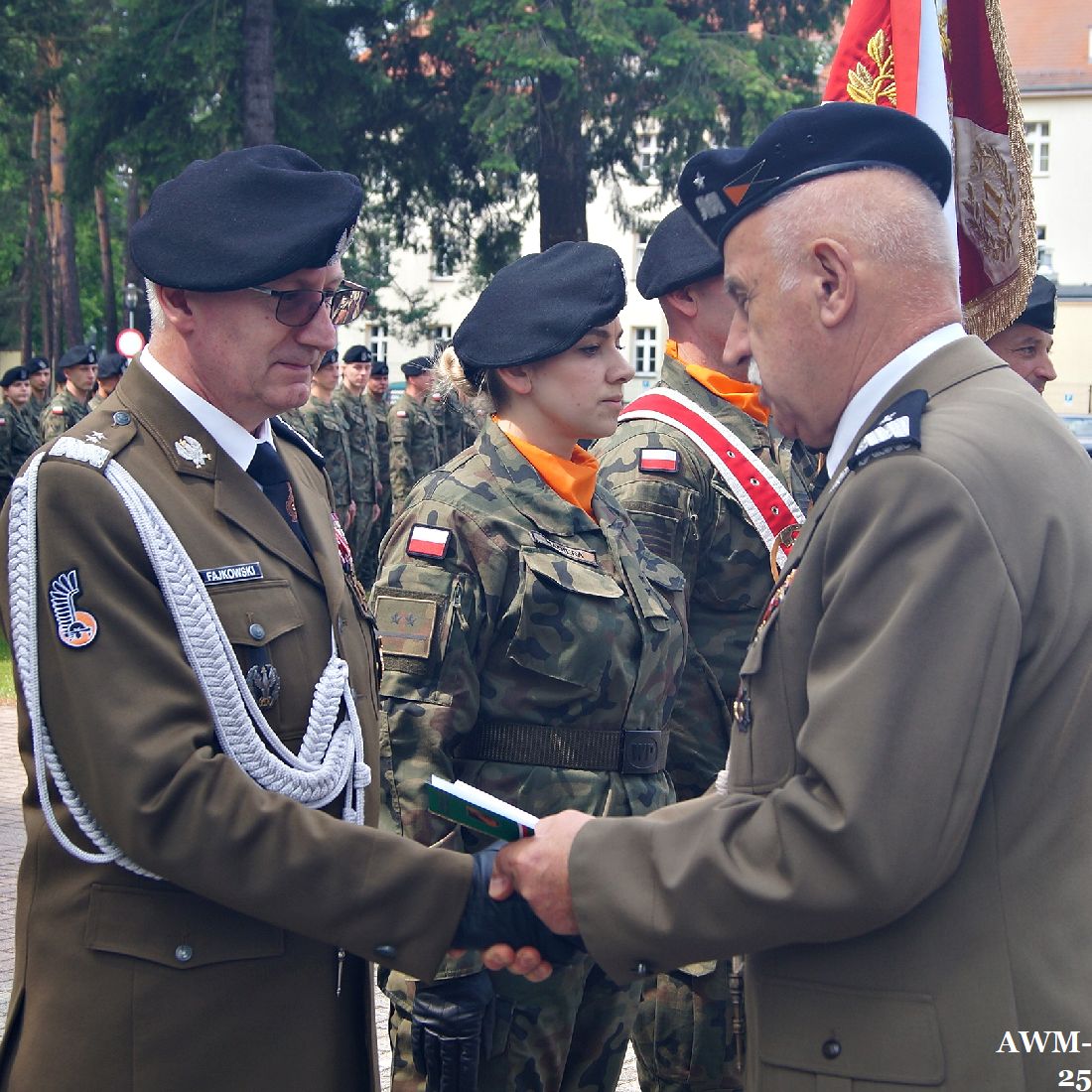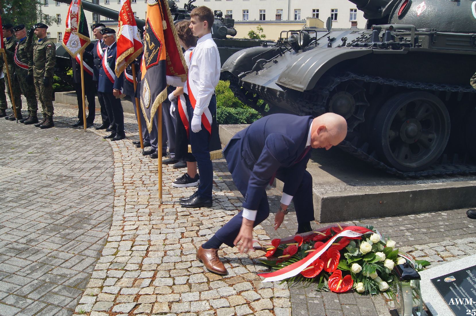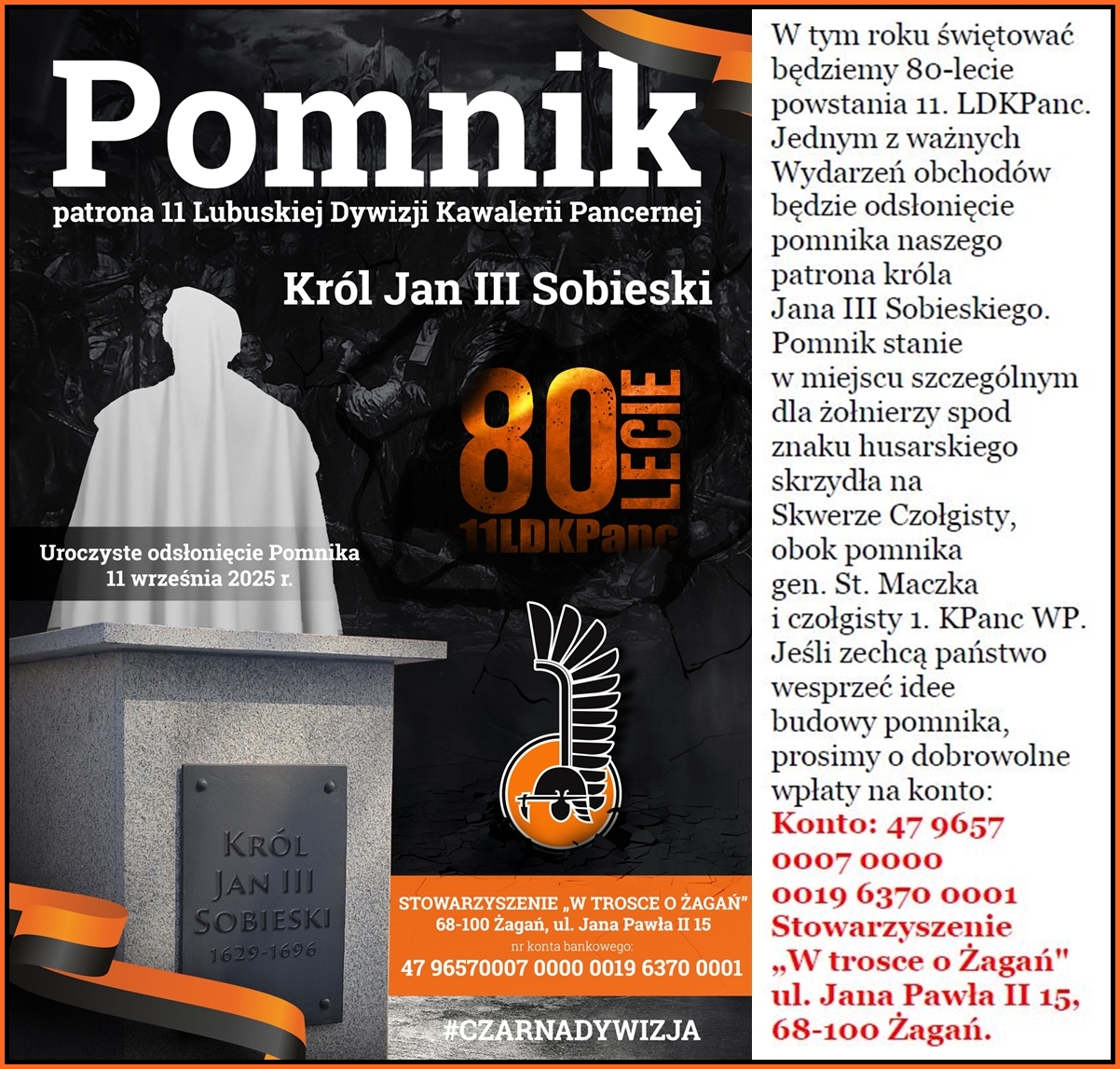 W dniu dzisiejszym 18 czerwca o godz. 11.00 na Skwerze Czołgisty odbyło się Święto Dywizyjnych Pancerniaków. Zorganizowali je: gen. dyw. Piotr Fajkowski – dowódca 11. Lubuskiej Dywizji Kawalerii Pancernej im. Króla Jana III Sobieskiego (11. LDKPanc) i gen. bryg. Zbigniew Szura – prezes Federacji Organizacji Polskich Pancerniaków (FOPP). Uroczystość odbyła się zgodnie z Ceremoniałem Wojskowym. Kompanię honorową z pocztem sztandarowym wystawiła 34. Brygada Kawalerii Pancernej. Orkiestra Garnizonowa zapewniła oprawę muzyczną. Narratorem była ppłk Katarzyna Sawicka – szefowa Wydziału Wychowawczego 11. LDKPanc. Zaproszone zostały żagańskie stowarzyszenia wojskowe: Stowarzyszenie Żołnierzy i Pracowników Wojska 3. Drezdeńskiego Pułku Czołgów Średnich im. 3. Brygady Pancernej z pocztem sztandarowym w składzie: Krzysztof Wenzel, Zbigniew Podedworny i Janusz Nieciecki, Stefan Kozak – prezes, Sławomir Panasiuk, Hanna Kucińska – skarbnik, Janina Fajger, Lesław Kowalski, Waldemar Miziński, Andrzej Miernicki – zastępca i Jerzy Szałaj; Koło nr 10 SKMP ONZ z sekretarzem Andrzejem Miernickim, Józefem Antkiewiczem, Krzysztofem Cękałą i Czesławem Aleksandrowiczem; Stowarzyszenie Tradycji 34. Brygady Kawalerii Pancernej z prezesem Zbigniewem Śliżewskim, żagańskie Koło nr 3 Związku Żołnierzy WP (ZŻWP) z pocztem sztandarowym w składzie: Stanisław Marciniszyn, Edward Pożerski i Tadeusz Szmagier oraz Koło nr 10 Związku Żołnierzy WP z Kożuchowa z Sylwinem Andrzejem Jaroszem i Mirosławem Lewandowskim. Wśród pocztów sztandarowych były poczty z: 10. BKPanc ze Świętoszowa, 34. BKPanc z Żagania, 17. WBZmech z Międzyrzecza oraz poczty żagańskich szkół. Po wprowadzeniu kompanii honorowej z pocztem sztandarowym 11. LDKPanc i złożeniu meldunku dowódcy 11. Dywizji przez ppłk. Marka Lewandowskiego podniesiono flagę RP i odegrano hymn państwowy. Gen. dyw. Piotr Fajkowski powitał zebranych. Szczególnie gorąco powitał płk. Eugeniusza Praczuka – prezesa Klubu Kombatantów 1. Drezdeńskiego Korpusu Pancernego WP, byłego żołnierza 4. Brygady Pancernej 1. Korpusu Pancernego WP. Wyróżnianie zasłużonych rozpoczęto od odczytania uchwały Zarządu FOPP o wyróżnieniu sztandaru 11. LDKPanc Medalem XV-Lecia FOPP „Na Straży Pamięci”. Następnie wyróżniano gości i żołnierzy tablem i listami pochwalnymi. Wśród wyróżnionych tablo otrzymał Stefan Kozak i Andrzej Miernicki. Prezes Stefan Kozak wręczył statuetki „XX-lecia Stowarzyszenia 3. pcz” dla gen. dyw. Piotra Fajkowskiego, Sławomira Kowala i płk. Lesława Kowalskiego. Po wręczeniu wyróżnień przemówienia wygłosili: gen. dyw. Piotr Fajkowski, gen. broni Mirosław Różański, Michał Syska – zastępca szefa Urzędu Do Spraw Kombatantów i Osób Represjonowanych, Marek Cebula – wojewoda Lubuski i gen. bryg. Zbigniew Szura – prezes FOPP. Płk. Eugeniusza Praczuka wyróżnił tablo Michał Syska. Uroczystość zakończył Apel Pamięci odczytany przez narratora oraz salwa honorowa. Delegacje złożyły wiązanki kwiatów i zapaliły znicze przy pomnikach - 1. Korpusu Pancernego WP i 1. Dywizji Pancernej gen. Stanisława Maczka. Po odprowadzeniu kompani honorowej uczestnicy udali się na Spotkanie Pokoleń do Klubu Wojskowego 11. LDKPanc.