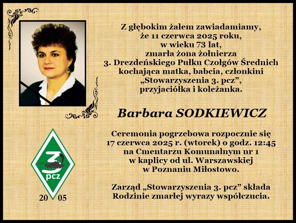 Stowarzyszenie Żołnierzy i Pracowników Wojska 3. Drezdeńskiego Pułku Czołgów Średnich im. 3. Brygady Pancernej obchodziło w maju br. XX-lecie istnienia. Powstało 26 listopada 2005 roku, podczas zebrania założycielskiego w Klubie Wojskowym 11. Lubuskiej Dywizji Kawalerii Pancernej w którym udział wzięło ponad 30 osób. Przygotowania do uroczystości rozpoczęto w 2024 roku. Wystawa poświęcona naszej działalności jest efektem pracy dwóch członków Stowarzyszenia 3. pcz – mjr. Janusza Niecieckiego i mjr. Andrzeja Miernickiego. Przeszukano archiwum fotograficzne w celu wybrania najbardziej merytorycznych w treści zdjęć, znaleziono firmę, która spełniała postawione wymogi wykonawcze i finansowe. Wystawa była eksponowana w Klubie Wojskowym 11. LDKPanc od 5 do 31 maja. Od 9 czerwca (poniedziałek) znajduje się w Centrum Tradycji Polskich Wojsk Pancernych przy Skwerze Czołgisty. Pierwszymi którzy się z nią zapoznali byli uczniowie i nauczyciele z Ośrodka Szkolno - Wychowawczego Nr 2 im. Gen. Stanisława Maczka w Bydgoszczy.