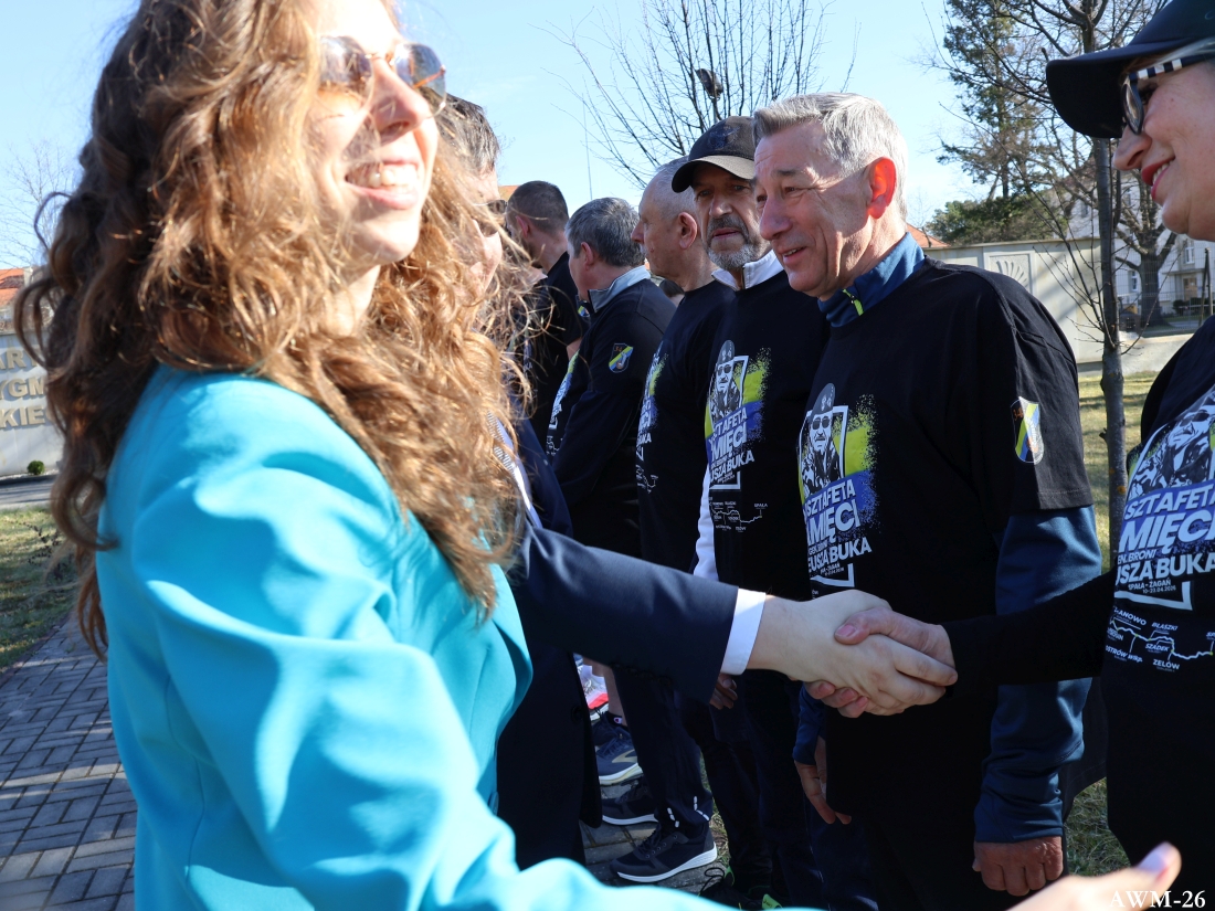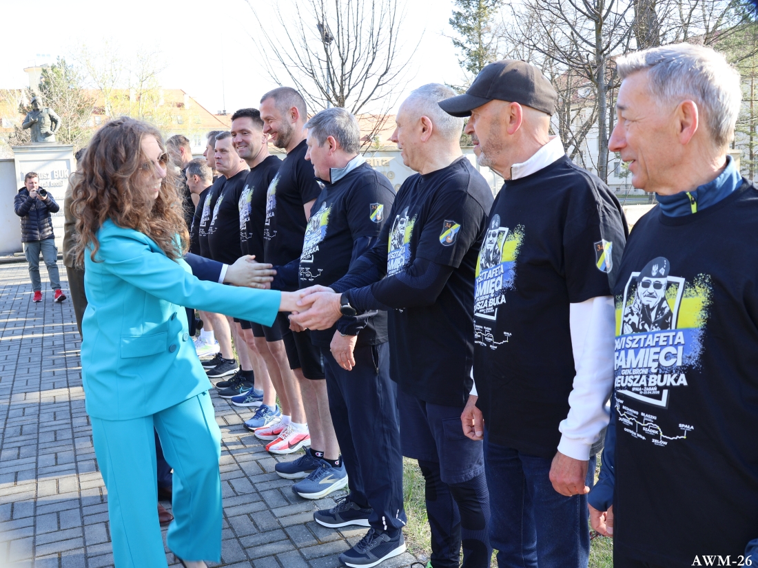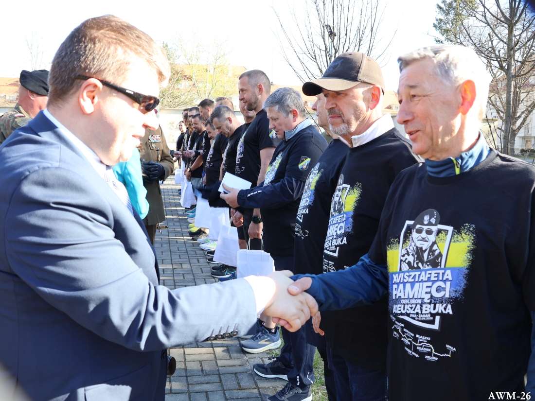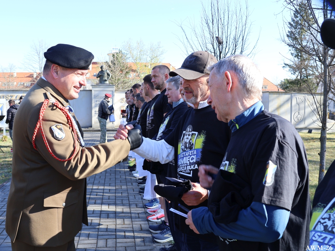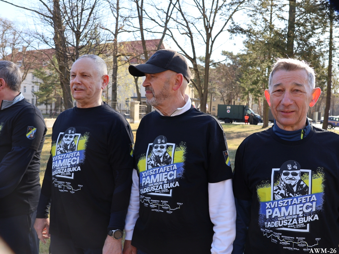 Pierwszym punktem drugiego dnia święta było zakończenie XV edycji Sztafety Pamięci gen. broni Tadeusza Buka, ze Spały do Żagania, przy pomniku poświęconym jego pamięci. Po złożeniu meldunku o zakończeniu sztafety, wygłoszono okolicznościowe przemówienia, wręczono uczestnikom certyfikaty oraz pamiątki. Po raz pierwszy w ostatnim etapie sztafety wzięli udział dwaj prezesi stowarzyszeń wojskowych: płk Zbigniew Śliżewski – Stowarzyszenie Tradycji 34. Brygady Kawalerii Pancernej i ppłk Mieczysław Kupczyk – Koło nr 3 Związku Żołnierzy WP, a wspierał ich kustosz Sali Tradycji 11. LDKPanc mjr dr Wiesław Chłopek. Honorowymi gośćmi były dzieci generała – Elżbieta i Mariusz Buk. Córka ze wzruszeniem dziękowała za kolejna edycję Sztafety. Uroczystość zakończyło złożenie wieńców i wiązanek kwiatów przy pomniku generała, przy którym wykonano pamiątkowe zdjęcie.