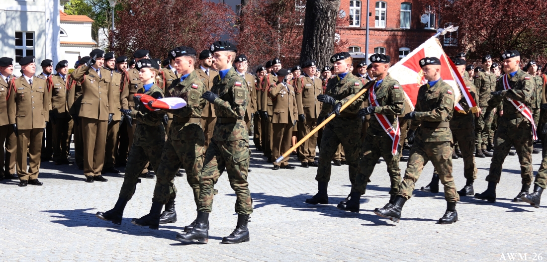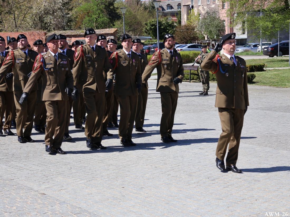 O godzinie 11:34 na Placu gen. Stanisława Maczka rozpoczął się Uroczysty Apel, w którym wzięli udział zaproszeni goście, dowódcy jednostek wojskowych dywizji, byli dowódcy 34. BKPanc, delegacje Policji, Straży Pożarnej, Straży Granicznej, żołnierze armii USA, delegacja armii Niemieckiej, przedstawiciele władz wojewódzkich oraz lokalnych, uczniowie żagańskich szkół, mieszkańcy Żagania. Uroczystość odbyła się zgodnie z Ceremoniałem Wojskowym. Oprawę muzyczną zapewniła Orkiestra Wojskowa z Żagania pod batutą st. sierż. Mateusza Prajznera. Po przybyciu dowódcy brygady i złożeniu meldunku przez dowódcę uroczystości, została podniesiona flaga państwowa. Poczet flagowy wystąpił w składzie: dowódca pocztu flagowego st. kpr. pchor. Angelika Moroz, flagowy st. szer. Tomasz Wójcik, asystujący szer. Michał Wiesner. Odegrano hymn państwowy oraz marsz 34. Brygady Kawalerii Pancernej. Na placu, obok pocztów sztandarowych i proporcowych był poczet Koła nr 3 ZŻ WP im. 1. Drezdeńskiego Korpusu Pancernego w Żaganiu. Dowódcą uroczystości był ppłk Piotr Grabowski. Narrację prowadziła por. Lidia Żmuda – szefowa Sekcji Wychowawczej. Dowódcą kompanii honorowej był ppor. Kamil Antkowiak, dowódcą pocztu sztandarowego ppor. Kacper Rybkowski, sztandarowy plut. Kacper Tymon a asystującym plut. Krzysztof Dymiński. Kompanię wystawił 1. batalion czołgów. Przemówienia wygłosili: dowódca brygady płk Jerzy Biryłko, płk w st. spocz. Eugeniusz Praczuk oraz gen. bryg. Roman Łytkowski – zastępca dowódcy 11. LDKPanc – szef sztabu. Wyróżniającym akcentem było wręczenie Chorągwi Wojska Polskiego dla 34. BKPanc. Płk Eugeniusz Praczuk wyróżnił płk. Jerzego Biryłkę Gwiazdą. Odczytano rozkazy o wyróżnieniu żołnierzy i pracowników Resortu Obrony awansami, medalami, listami pochwalnymi, nagrodami, odznakami. Uczniowie Zespołu Szkół Tekstylnych i Ogólnokształcących „59” z Żagania przygotowali musztrę paradną, która kunsztem wykonania zdobyła serca uczestników. Po odegraniu Pieśni Reprezentacyjnej Wojska Polskiego uroczystość zakończyła defilada pododdziałów. Uczestnicy wykonali pamiątkowe zdjęcia.