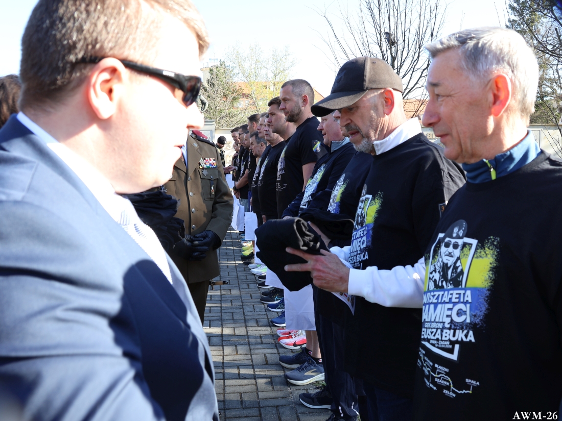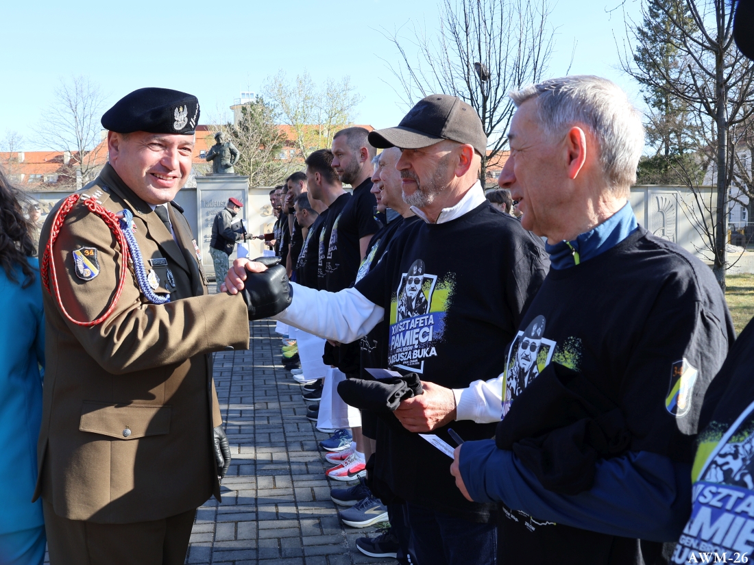 Pierwszym punktem drugiego dnia święta było zakończenie XV edycji Sztafety Pamięci gen. broni Tadeusza Buka, ze Spały do Żagania, przy pomniku poświęconym jego pamięci. Po złożeniu meldunku o zakończeniu sztafety, wygłoszono okolicznościowe przemówienia, wręczono uczestnikom certyfikaty oraz pamiątki. Po raz pierwszy w ostatnim etapie sztafety wzięli udział dwaj prezesi stowarzyszeń wojskowych: płk Zbigniew Śliżewski – Stowarzyszenie Tradycji 34. Brygady Kawalerii Pancernej i ppłk Mieczysław Kupczyk – Koło nr 3 Związku Żołnierzy WP, a wspierał ich kustosz Sali Tradycji 11. LDKPanc mjr dr Wiesław Chłopek. Honorowymi gośćmi były dzieci generała – Elżbieta i Mariusz Buk. Córka ze wzruszeniem dziękowała za kolejna edycję Sztafety. Uroczystość zakończyło złożenie wieńców i wiązanek kwiatów przy pomniku generała, przy którym wykonano pamiątkowe zdjęcie.