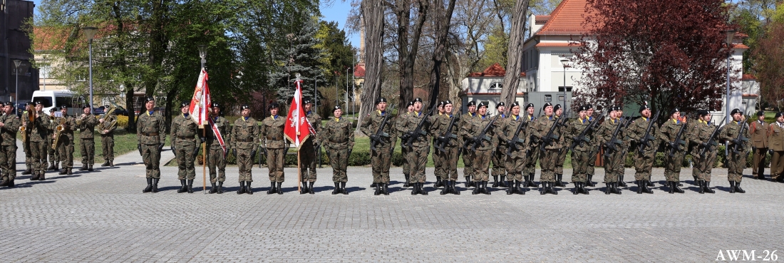 O godzinie 11:34 na Placu gen. Stanisława Maczka rozpoczął się Uroczysty Apel, w którym wzięli udział zaproszeni goście, dowódcy jednostek wojskowych dywizji, byli dowódcy 34. BKPanc, delegacje Policji, Straży Pożarnej, Straży Granicznej, żołnierze armii USA, delegacja armii Niemieckiej, przedstawiciele władz wojewódzkich oraz lokalnych, uczniowie żagańskich szkół, mieszkańcy Żagania. Uroczystość odbyła się zgodnie z Ceremoniałem Wojskowym. Oprawę muzyczną zapewniła Orkiestra Wojskowa z Żagania pod batutą st. sierż. Mateusza Prajznera. Po przybyciu dowódcy brygady i złożeniu meldunku przez dowódcę uroczystości, została podniesiona flaga państwowa. Poczet flagowy wystąpił w składzie: dowódca pocztu flagowego st. kpr. pchor. Angelika Moroz, flagowy st. szer. Tomasz Wójcik, asystujący szer. Michał Wiesner. Odegrano hymn państwowy oraz marsz 34. Brygady Kawalerii Pancernej. Na placu, obok pocztów sztandarowych i proporcowych był poczet Koła nr 3 ZŻ WP im. 1. Drezdeńskiego Korpusu Pancernego w Żaganiu. Dowódcą uroczystości był ppłk Piotr Grabowski. Narrację prowadziła por. Lidia Żmuda – szefowa Sekcji Wychowawczej. Dowódcą kompanii honorowej był ppor. Kamil Antkowiak, dowódcą pocztu sztandarowego ppor. Kacper Rybkowski, sztandarowy plut. Kacper Tymon a asystującym plut. Krzysztof Dymiński. Kompanię wystawił 1. batalion czołgów. Przemówienia wygłosili: dowódca brygady płk Jerzy Biryłko, płk w st. spocz. Eugeniusz Praczuk oraz gen. bryg. Roman Łytkowski – zastępca dowódcy 11. LDKPanc – szef sztabu. Wyróżniającym akcentem było wręczenie Chorągwi Wojska Polskiego dla 34. BKPanc. Płk Eugeniusz Praczuk wyróżnił płk. Jerzego Biryłkę Gwiazdą. Odczytano rozkazy o wyróżnieniu żołnierzy i pracowników Resortu Obrony awansami, medalami, listami pochwalnymi, nagrodami, odznakami. Uczniowie Zespołu Szkół Tekstylnych i Ogólnokształcących „59” z Żagania przygotowali musztrę paradną, która kunsztem wykonania zdobyła serca uczestników. Po odegraniu Pieśni Reprezentacyjnej Wojska Polskiego uroczystość zakończyła defilada pododdziałów. Uczestnicy wykonali pamiątkowe zdjęcia.